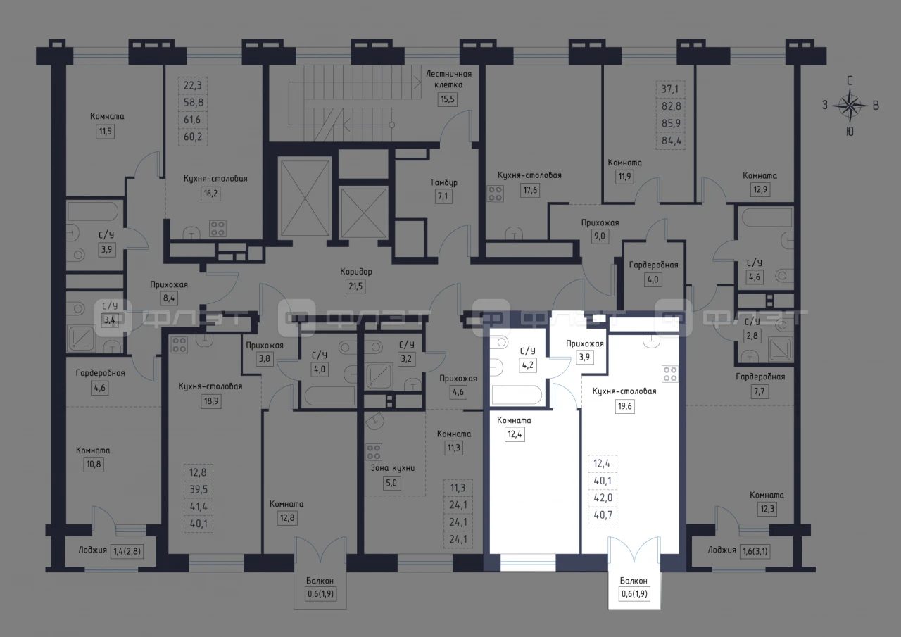 - 40.7/12.4/19.6 м²