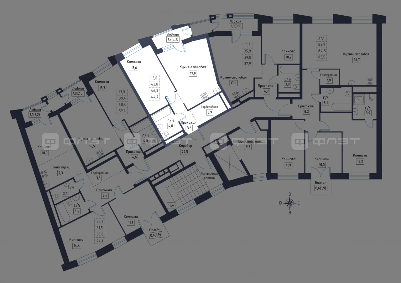 - 44.7/13.6/17.9 м²